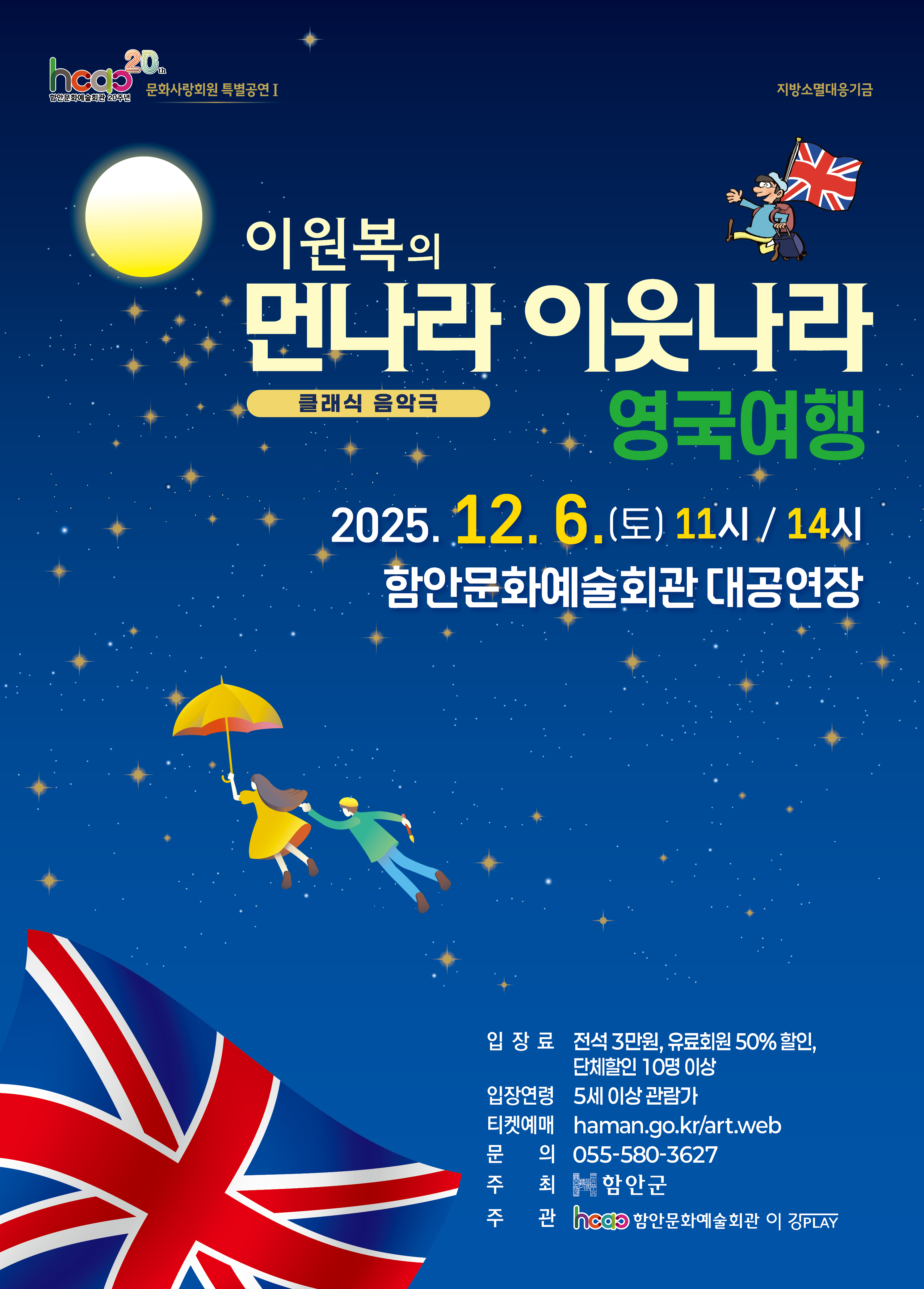 - 예매방법: 함안문화예술회관 누리집(haman.go.kr/art.web),