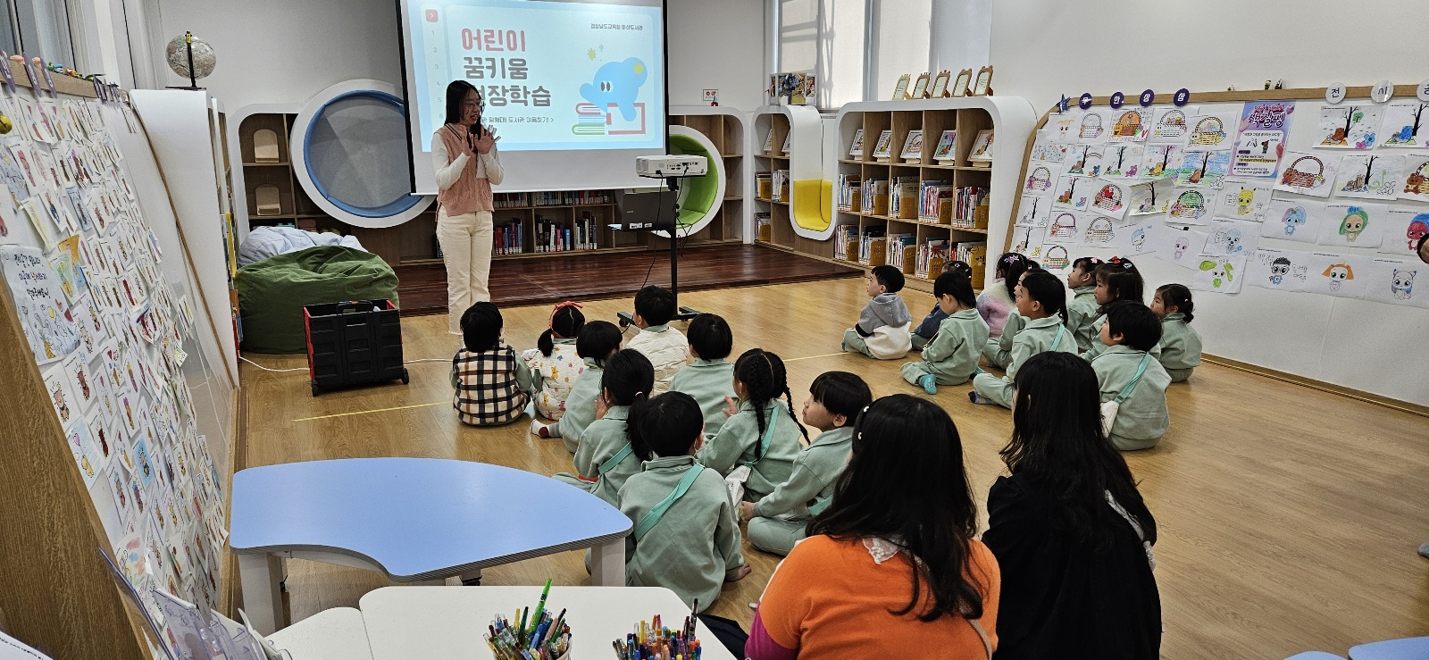 * 아이들과 도서관 체험을 다녀왔습니다. 강사 선생님과 책을 읽기도 하고 자유롭게