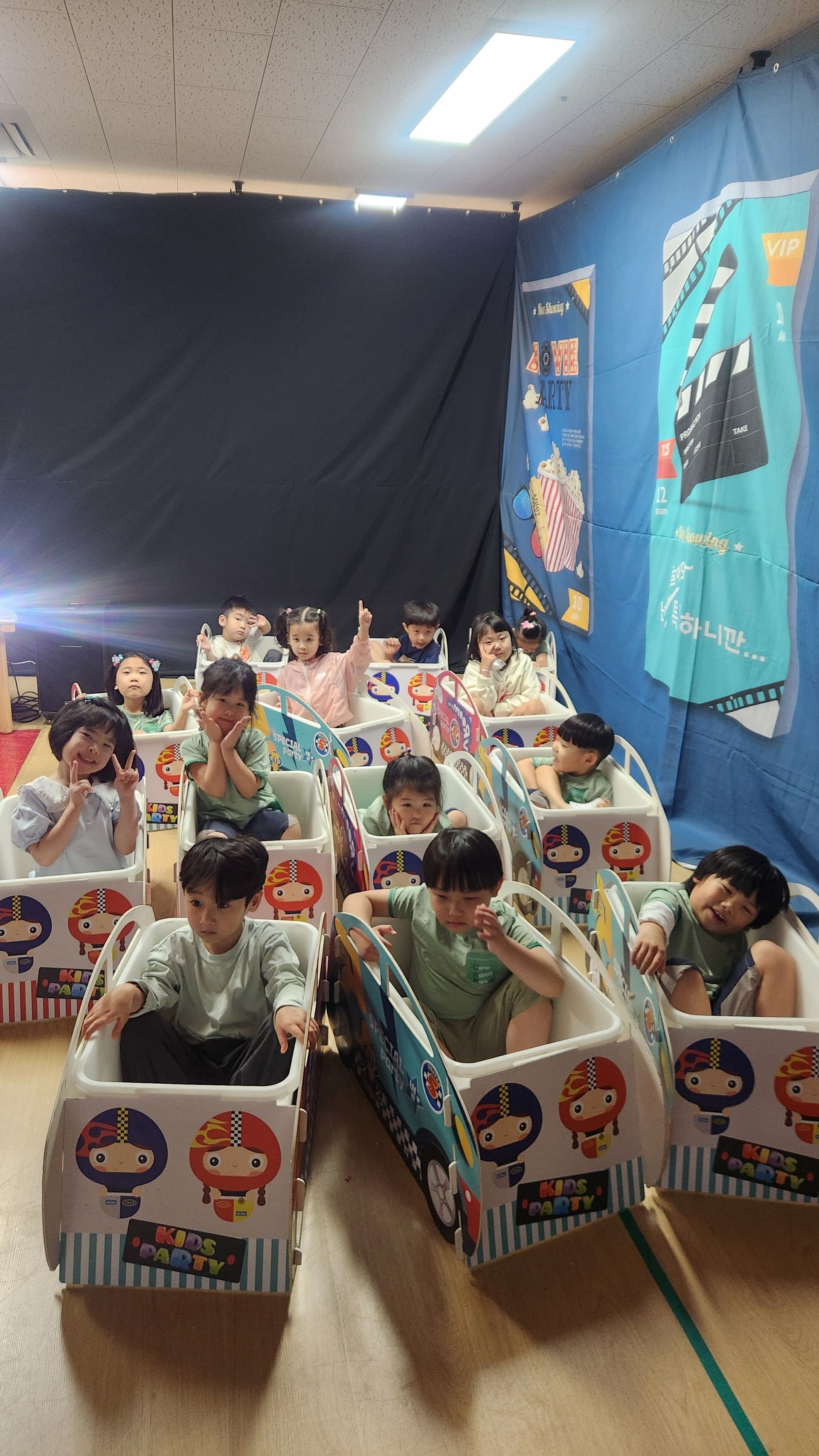 유치원에서 영화관 체험을 해보았습니다. 영화관에서 지켜야 할 예절에 대해 이야기 나누고